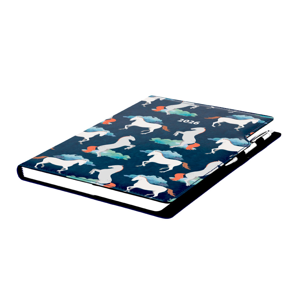 Kalendarz książkowy DESIGN tygodniowy A4 2026 - niebieski - koń