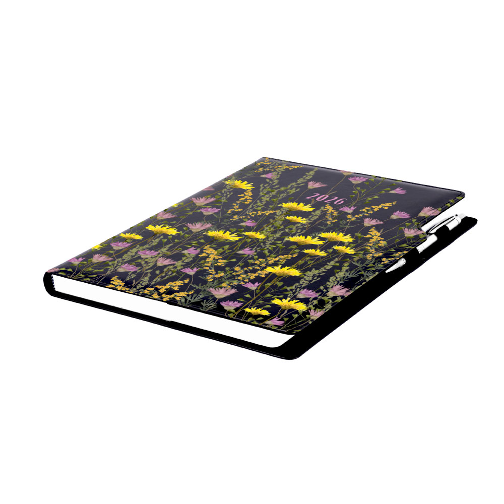 Kalendarz książkowy DESIGN tygodniowy A4 2026 polski - czarny - łąka