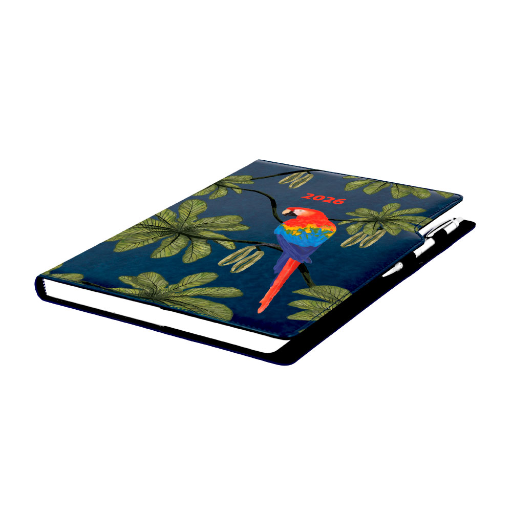 Kalendarz książkowy DESIGN tygodniowy A4 2026 polski - granatowy - papuga
