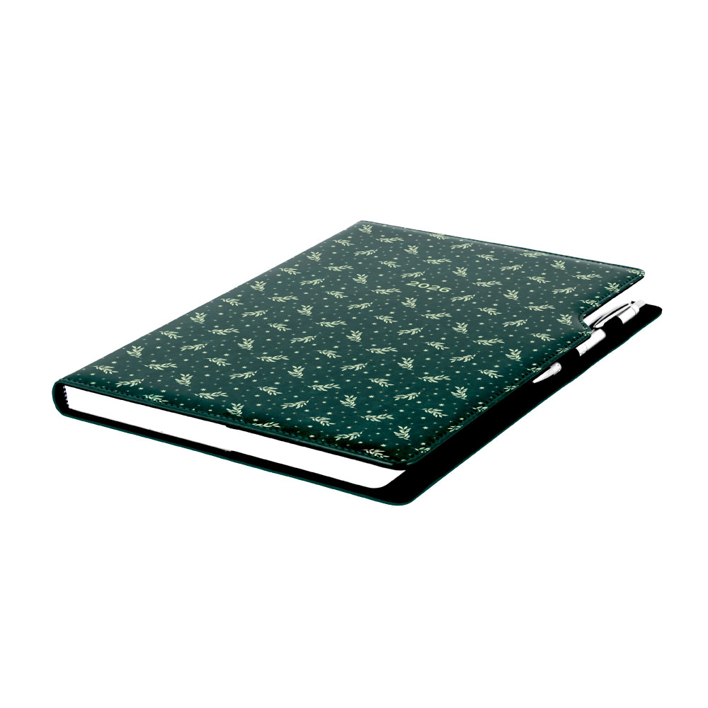 Kalendarz książkowy DESIGN tygodniowy A4 2026 - zielony - gałązki