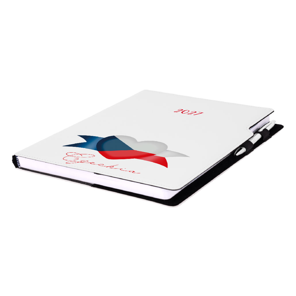 Kalendarz książkowy DESIGN tygodniowy A4 2027 - biały - Czeska - flaga