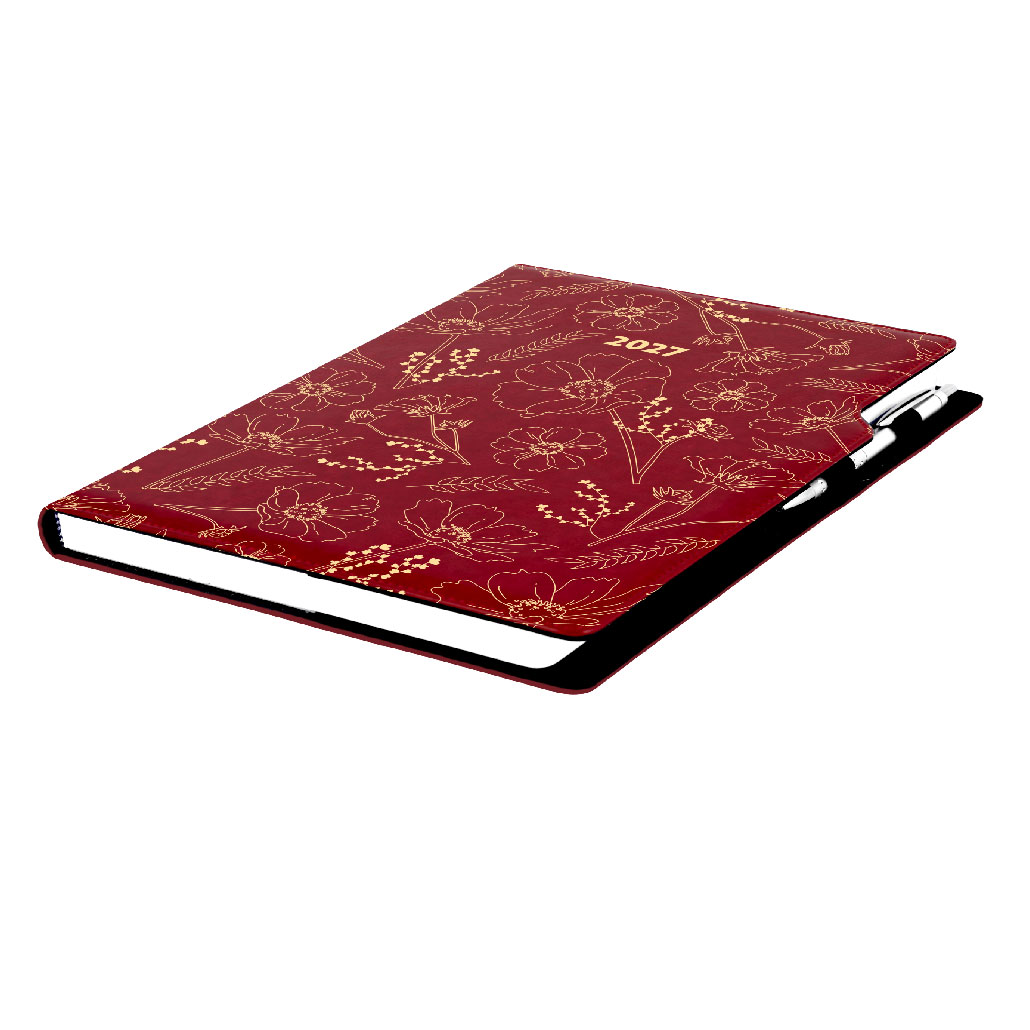 Kalendarz książkowy DESIGN tygodniowy A4 2027 - bordowy - kwiaty