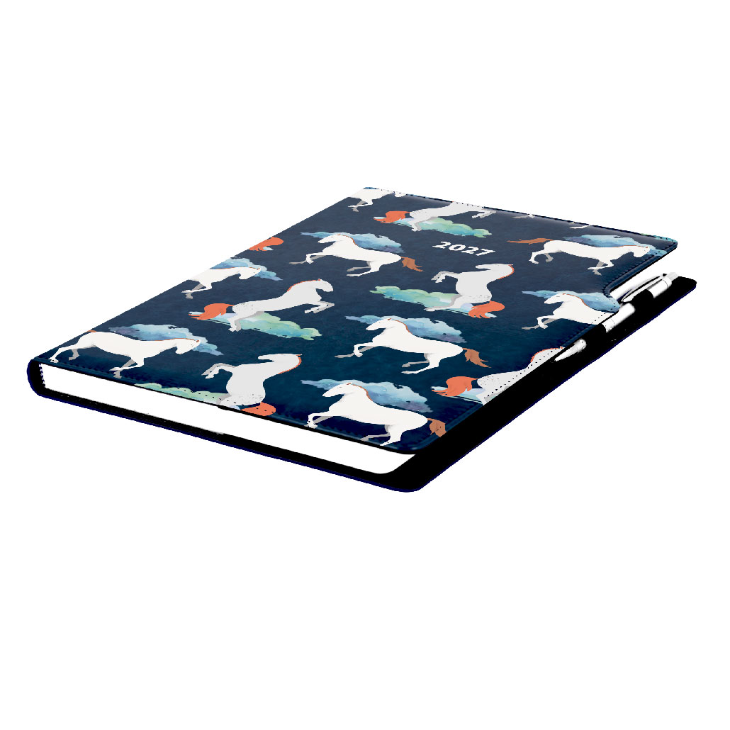 Kalendarz książkowy DESIGN tygodniowy A4 2027 - niebieski - koń