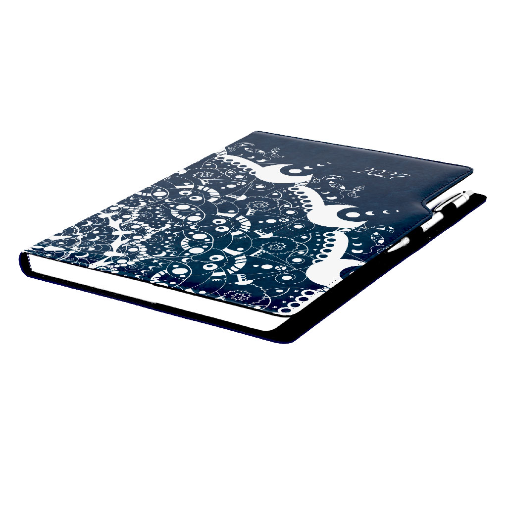 Kalendarz książkowy DESIGN tygodniowy A4 2027 - niebieski - ornament