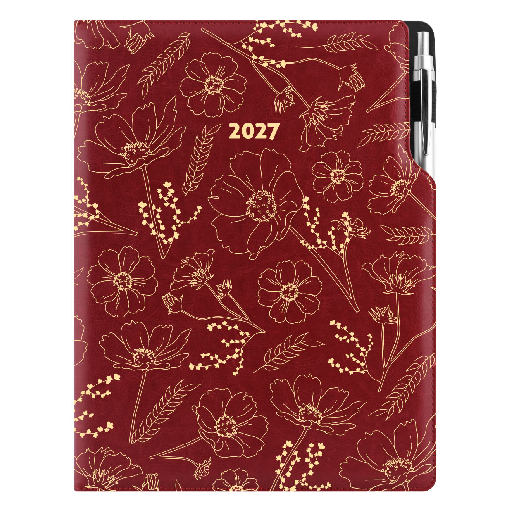 Kalendarz książkowy DESIGN tygodniowy A4 2027 polski - bordo - kwiaty