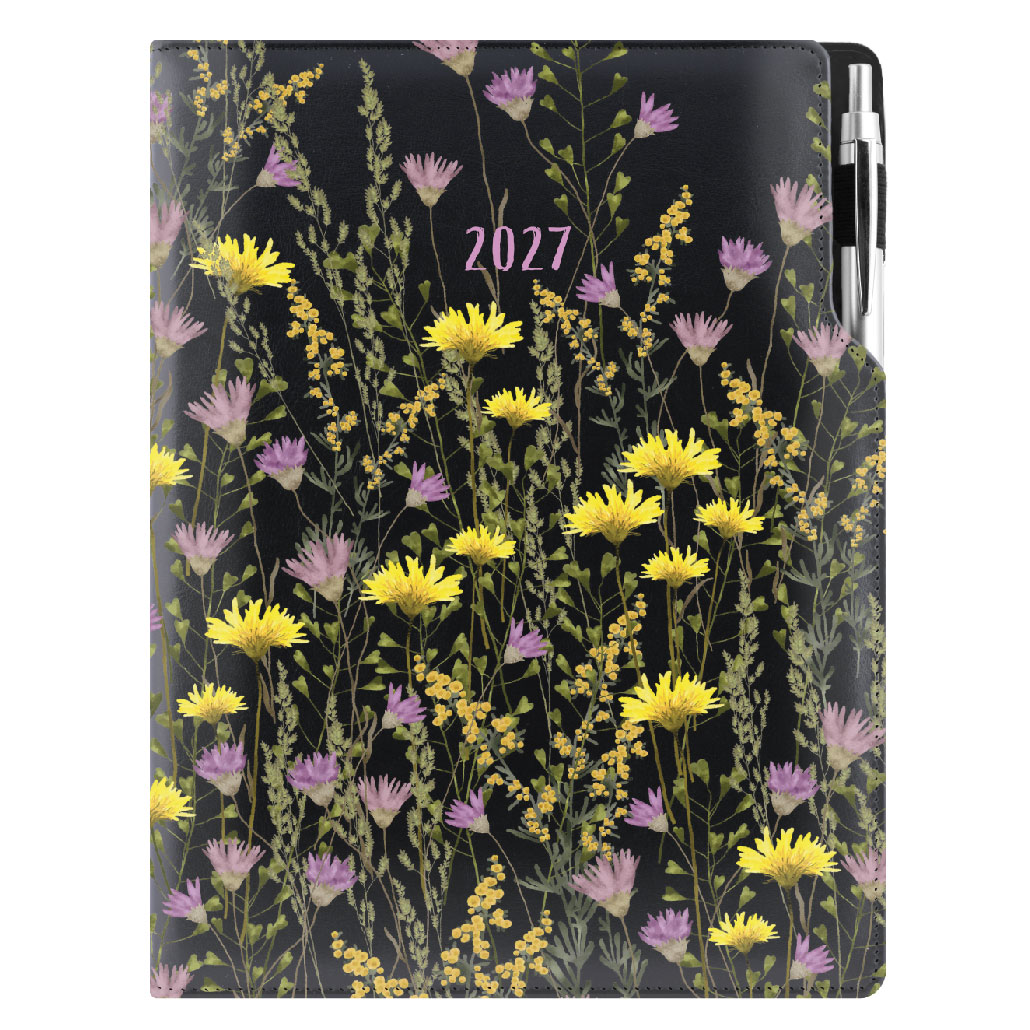 Kalendarz książkowy DESIGN tygodniowy A4 2027 polski - czarny - łąka