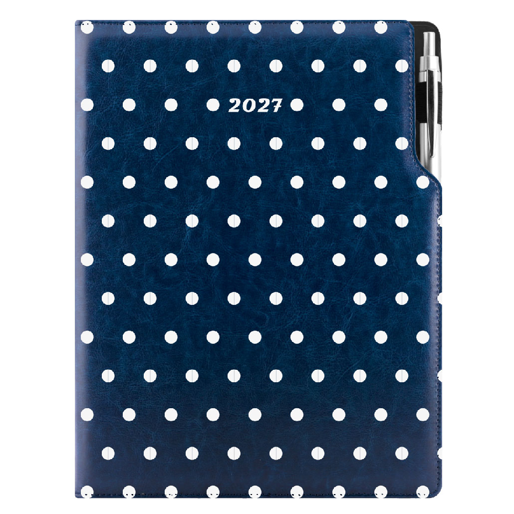 Kalendarz książkowy DESIGN tygodniowy A4 2027 polski - granatowy - groszki