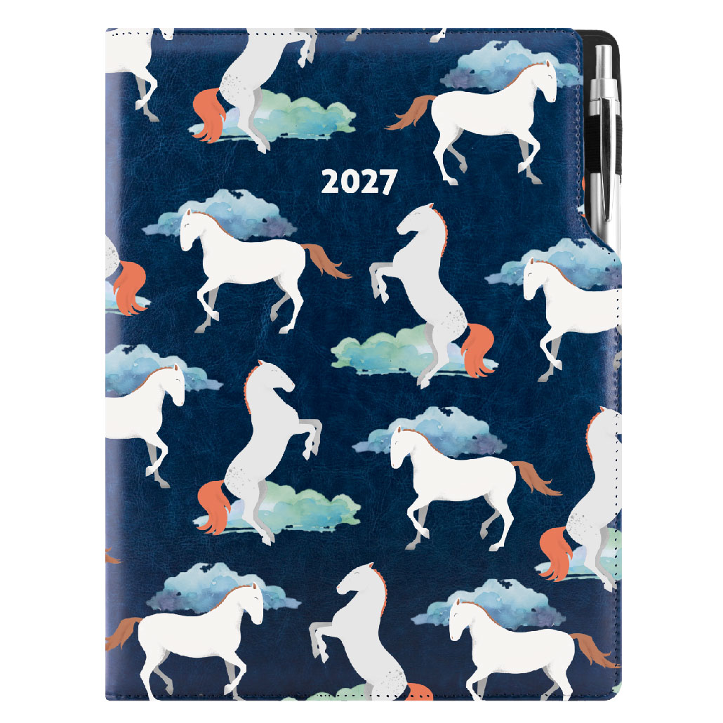 Kalendarz książkowy DESIGN tygodniowy A4 2027 polski - granatowy - konie