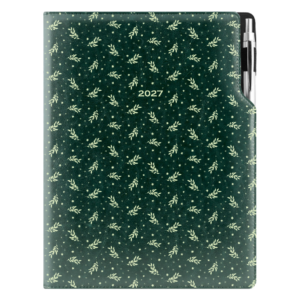 Kalendarz książkowy DESIGN tygodniowy A4 2027 polski - zielony - gałązki