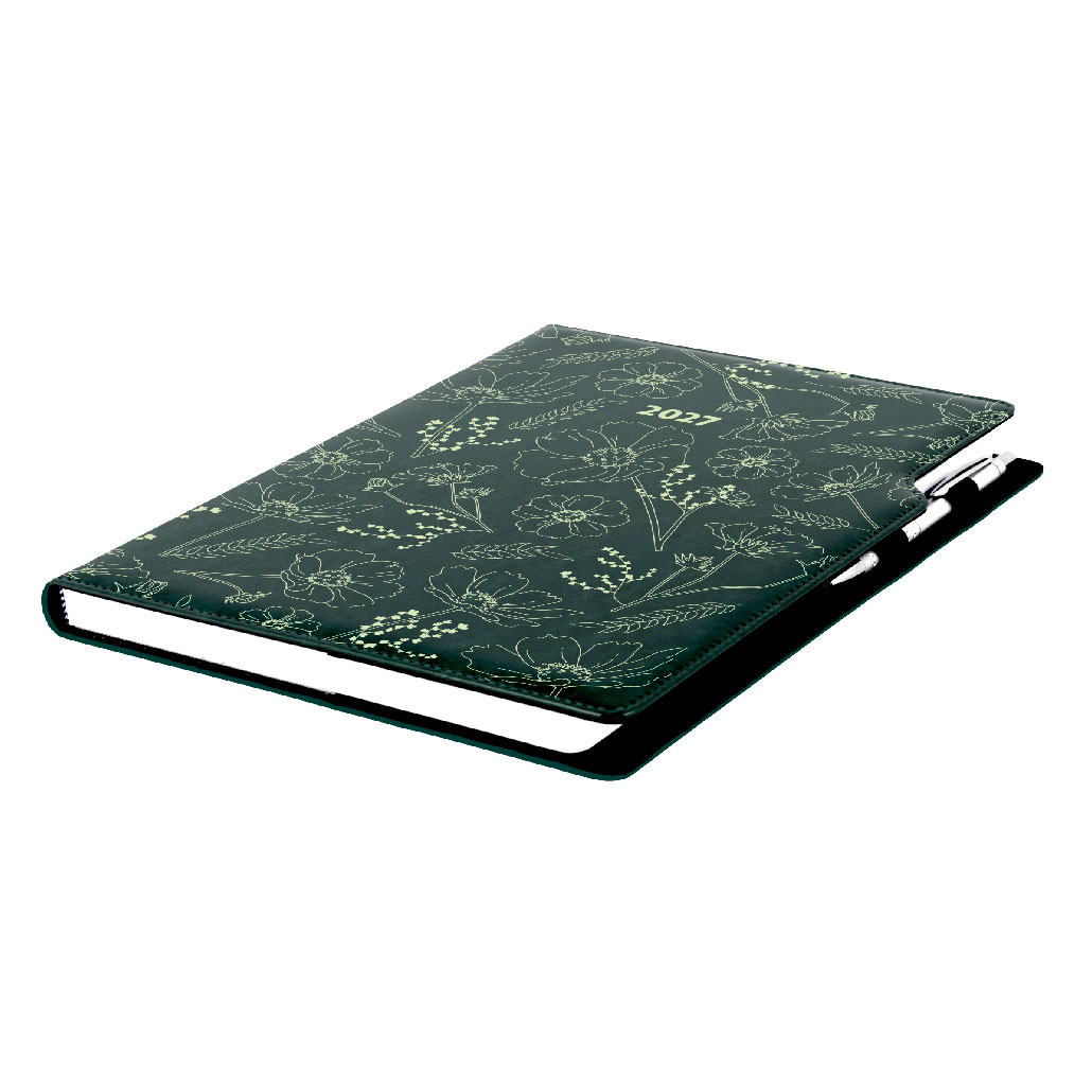 Kalendarz książkowy DESIGN tygodniowy A4 2027 - zielony - kwiatki