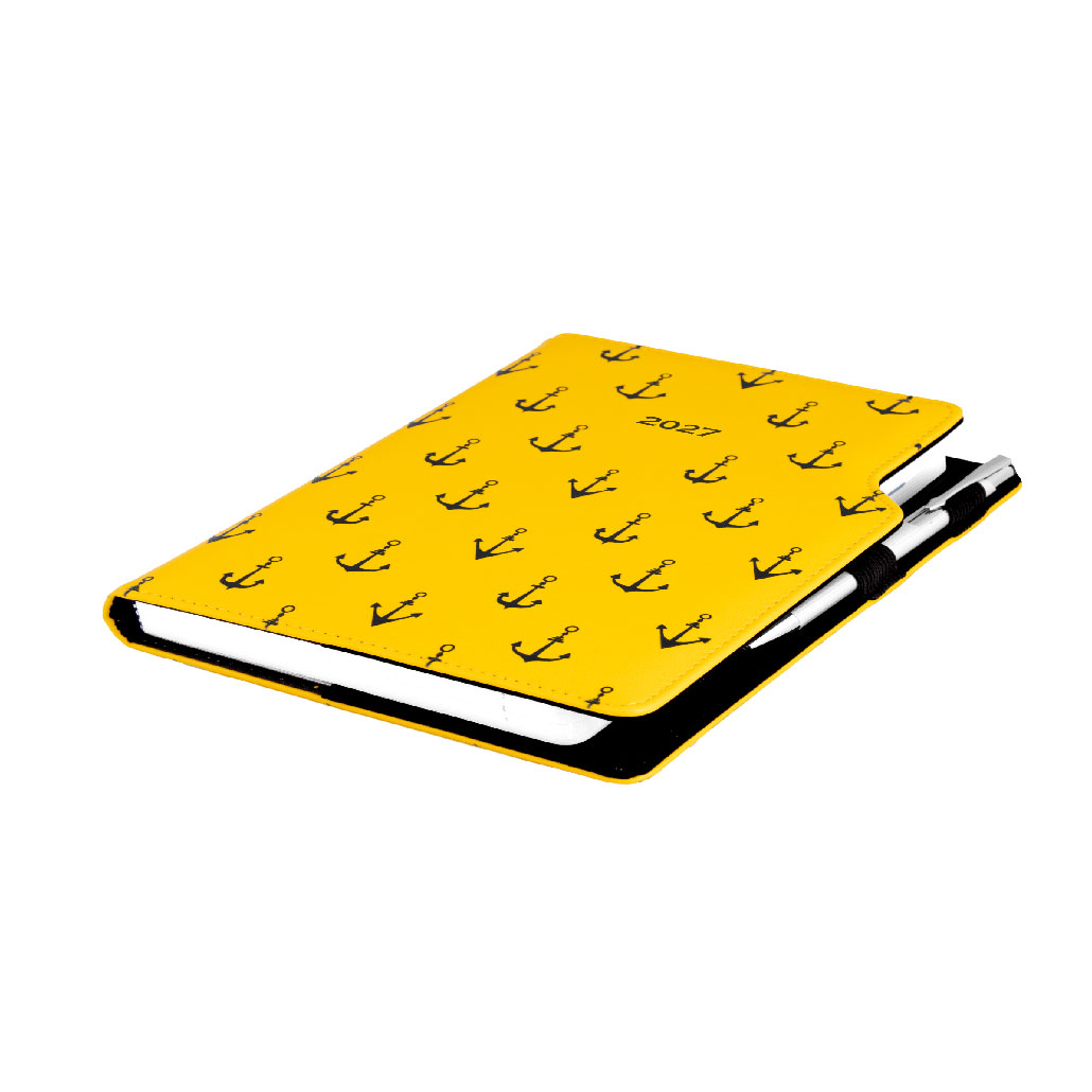 Kalendarz książkowy DESIGN tygodniowy A4 2027 - żółty - marynarski- kotwice