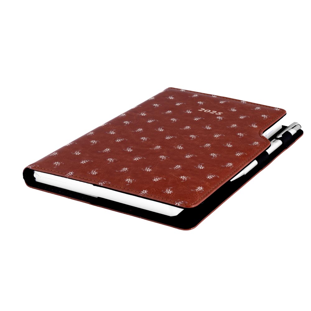 Kalendarz książkowy DESIGN tygodniowy A5 2025 czeski - brązowy - biały kwiat