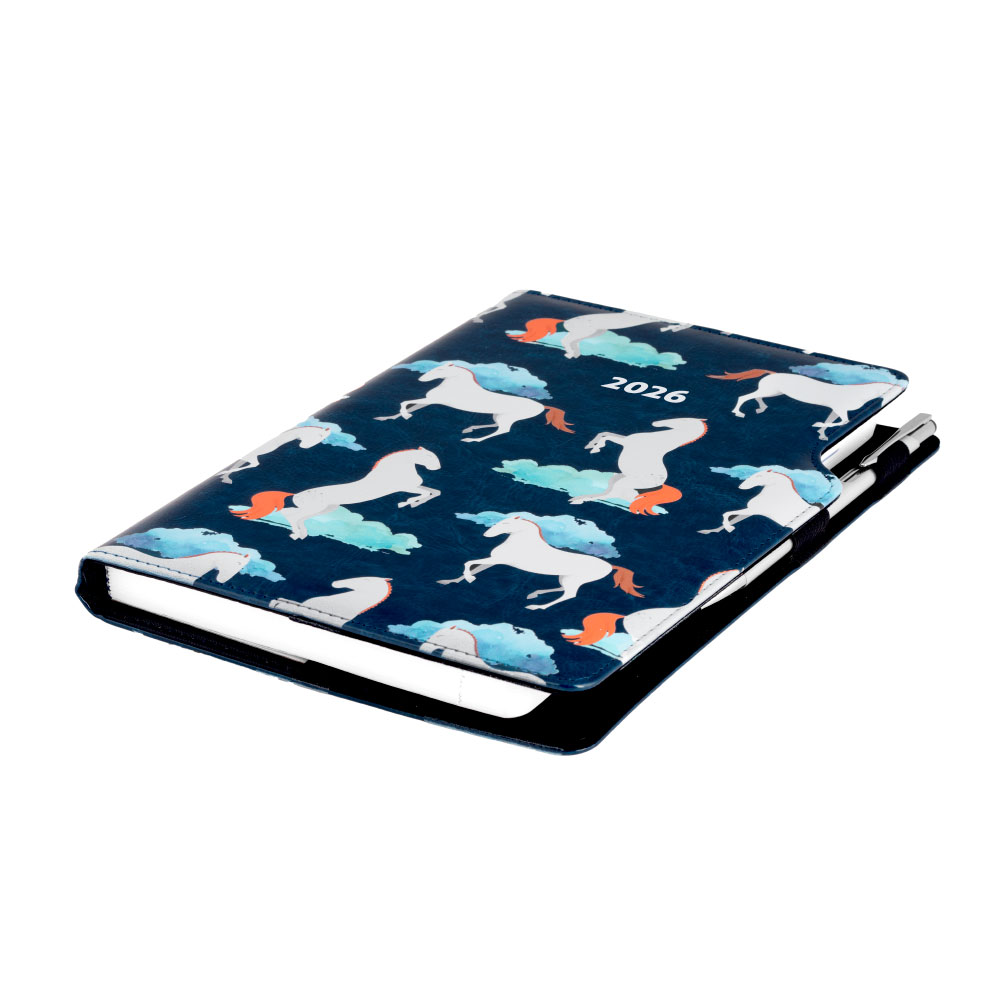 Kalendarz książkowy DESIGN tygodniowy A5 2026 czeski - niebieski - koń