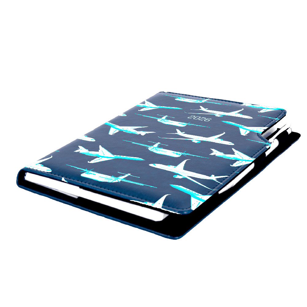 Kalendarz książkowy DESIGN tygodniowy A5 2026 polski - granatowy - Samoloty