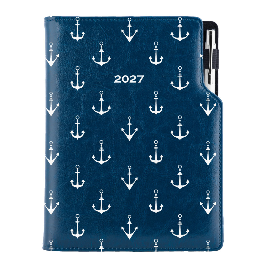Kalendarz książkowy DESIGN tygodniowy A5 2027 czeski - niebieski - marynarz - kotwice