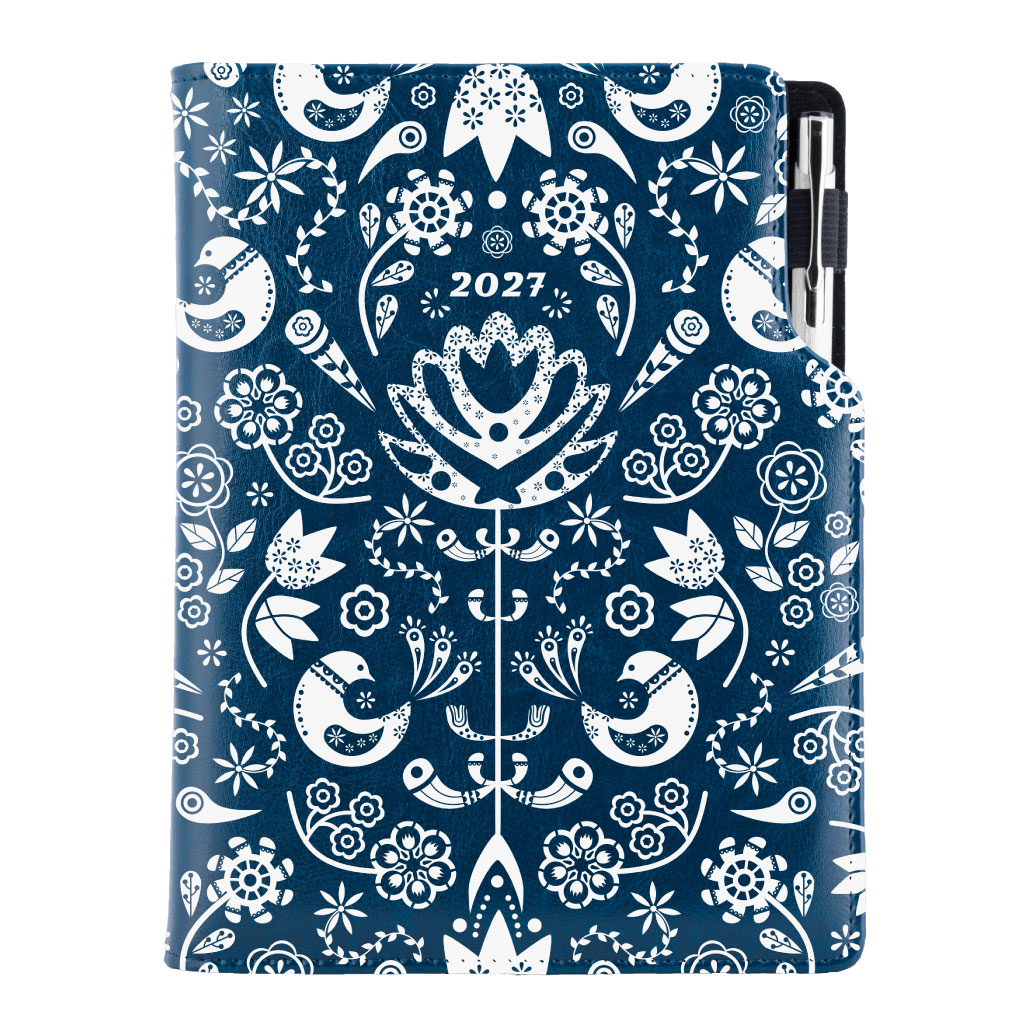 Kalendarz książkowy DESIGN tygodniowy A5 2027 polski - granatowy - Folk