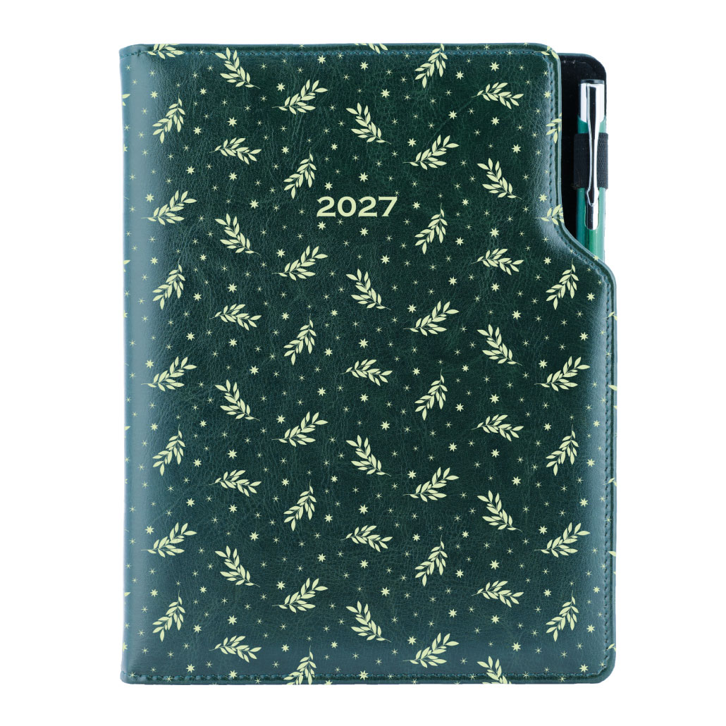 Kalendarz książkowy DESIGN tygodniowy A5 2027 polski - zielony - gałązki