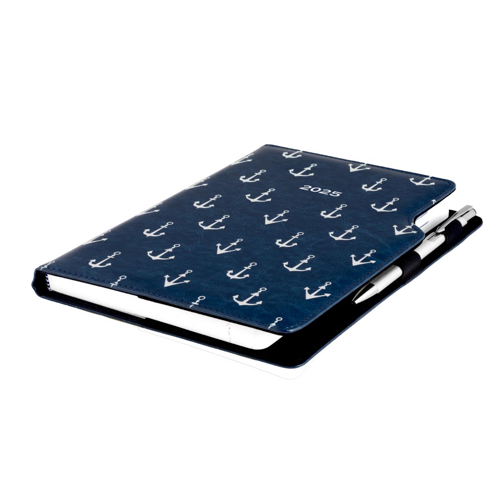 Kalendarz książkowy DESIGN tygodniowy B5 2024 polski - granatowy - marynarski- kotwice