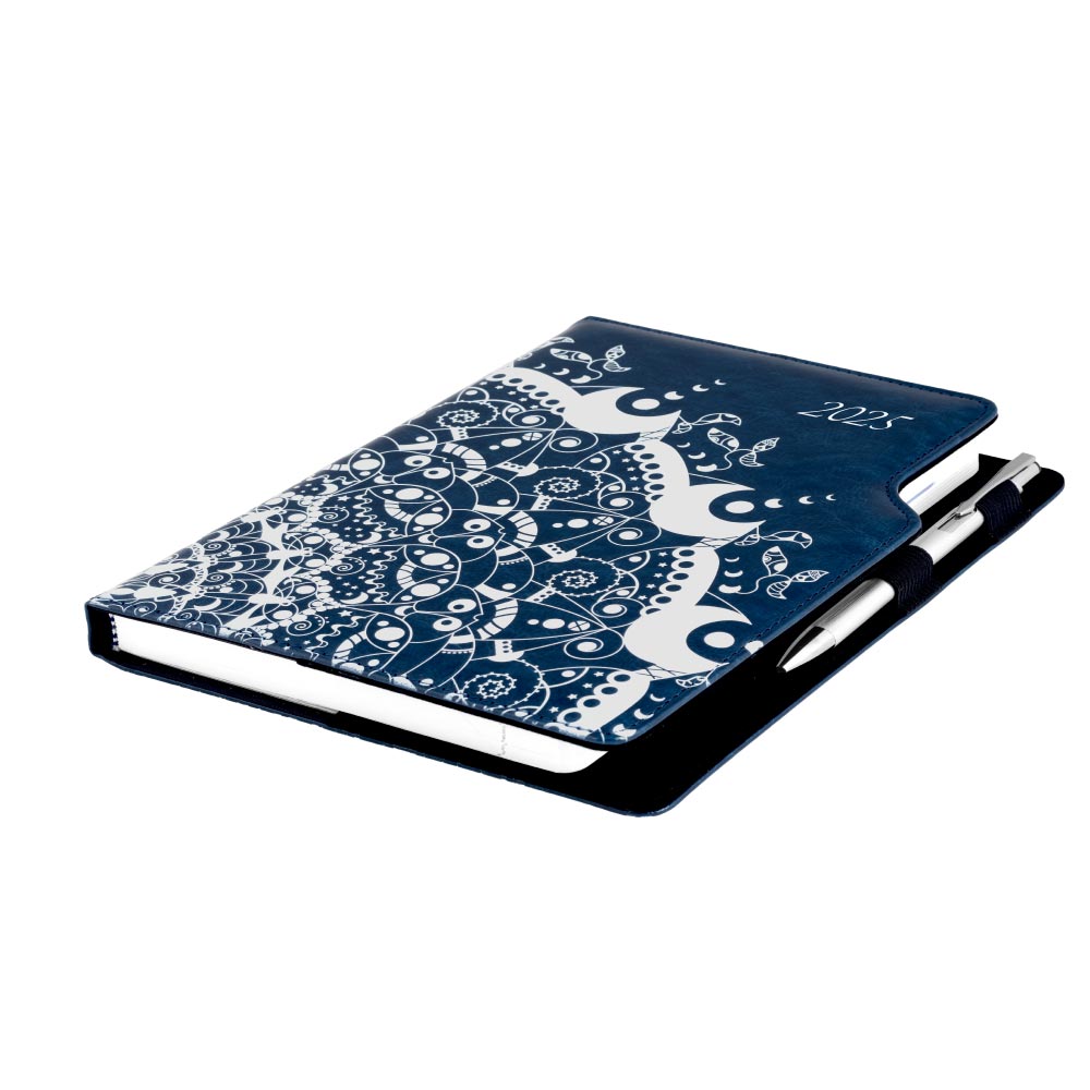 Kalendarz książkowy DESIGN tygodniowy B5 2025 polski - granatowy - ornament