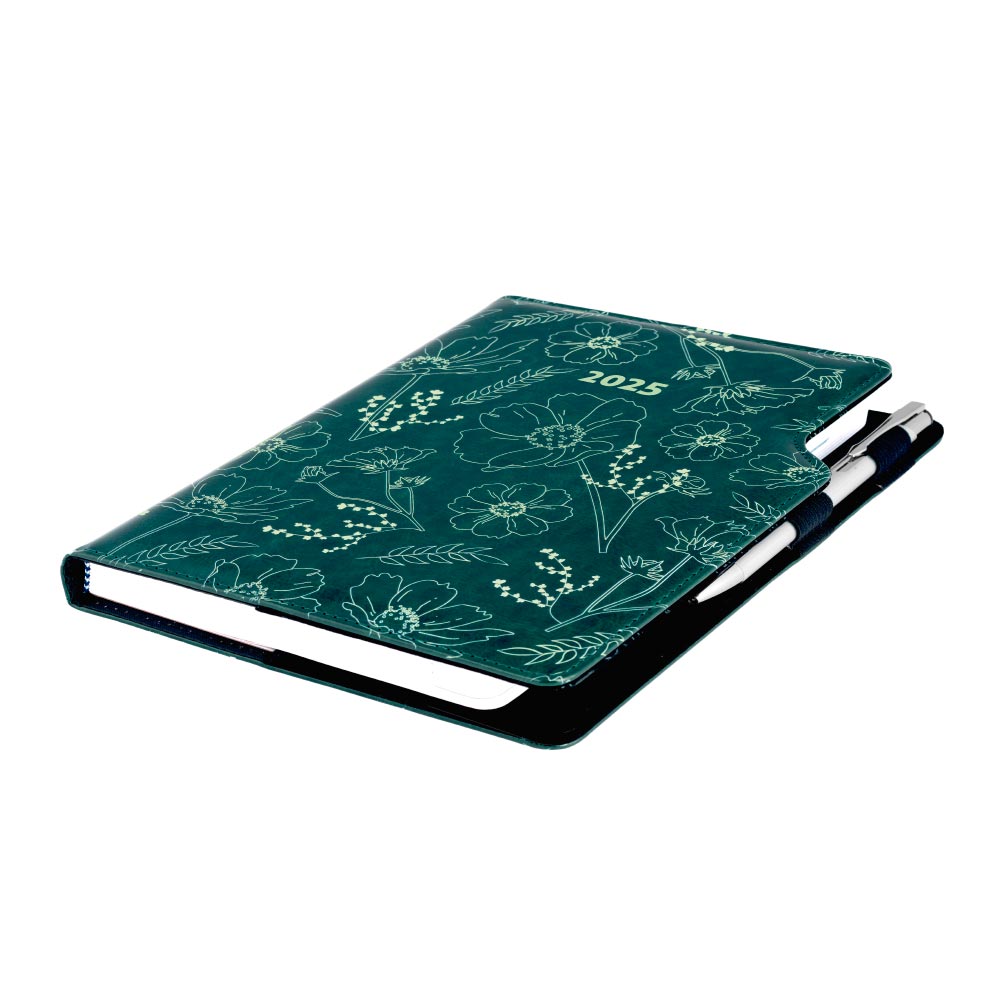Kalendarz książkowy DESIGN tygodniowy B5 2025 polski - zielony - kwiatki