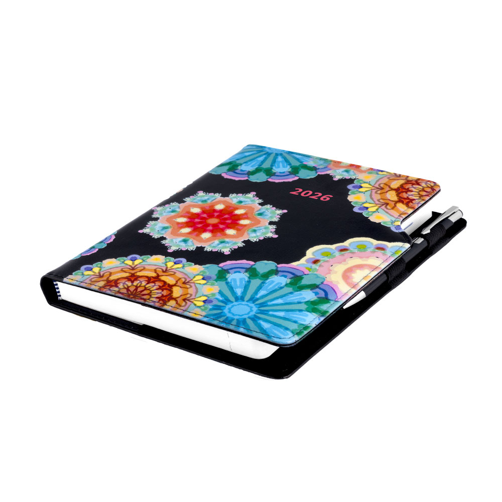 Kalendarz książkowy DESIGN tygodniowy B5 2026 - czarny - kalejdoskop