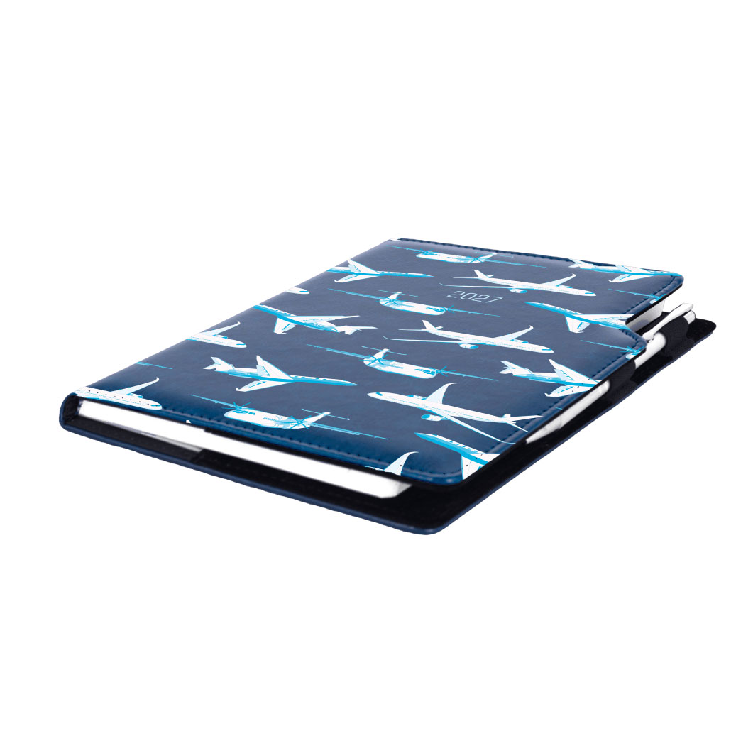Kalendarz książkowy DESIGN tygodniowy B5 2027 czeski - granatowy - Samoloty