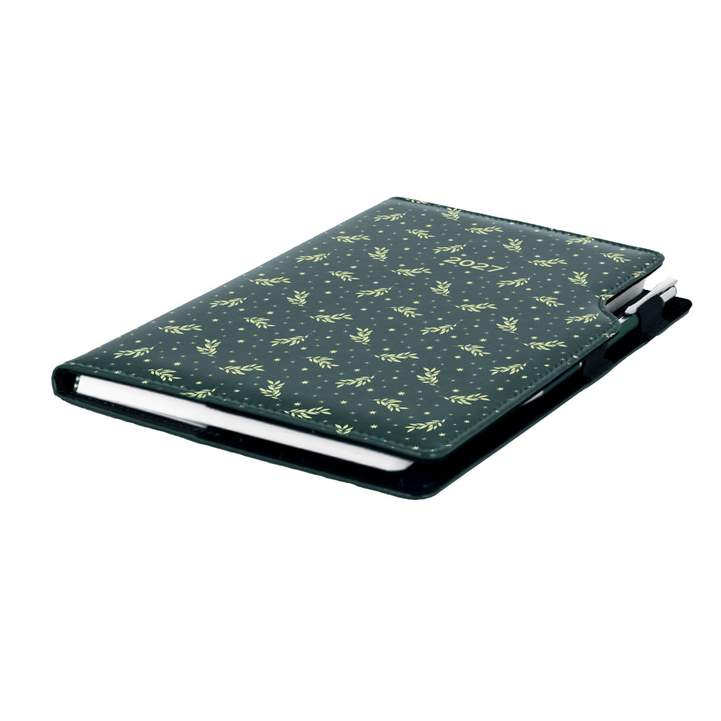 Kalendarz książkowy DESIGN tygodniowy B5 2027 - zielony - gałązki