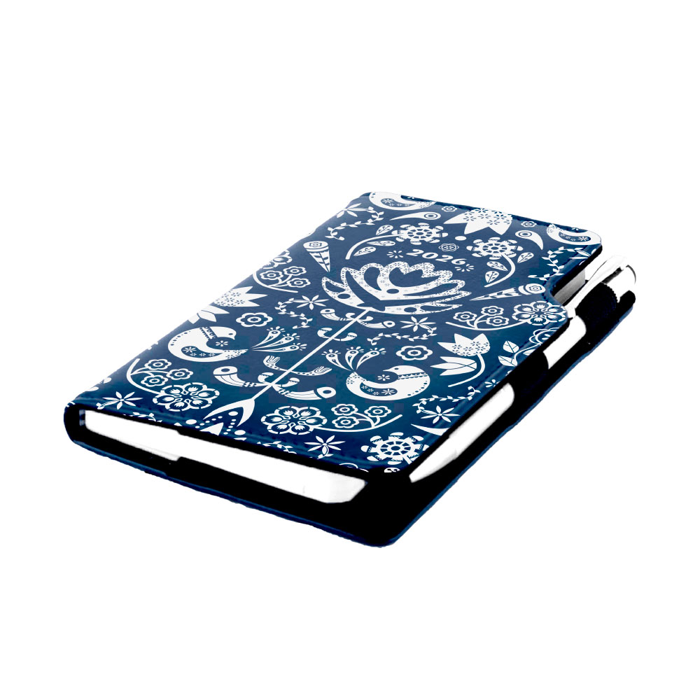 Kalendarz książkowy DESIGN tygodniowy kieszonkowy 2026 czeski- granatowy - Folk