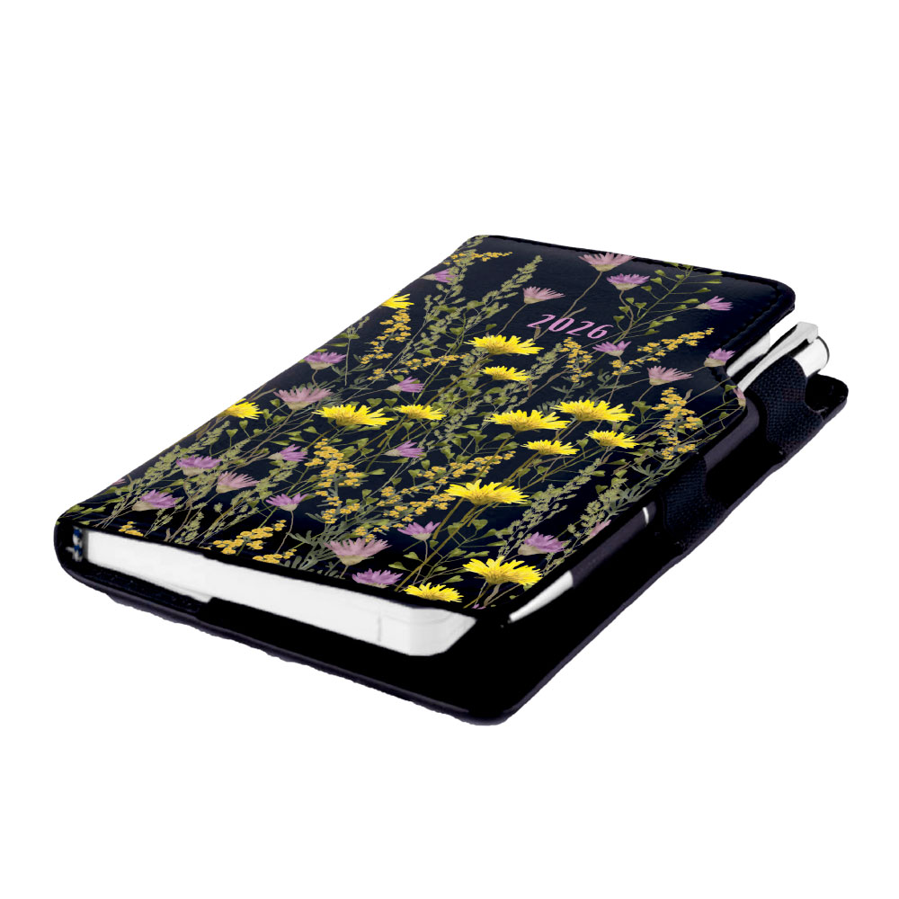 Kalendarz książkowy DESIGN tygodniowy kieszonkowy 2026 polski - czarny - łąka