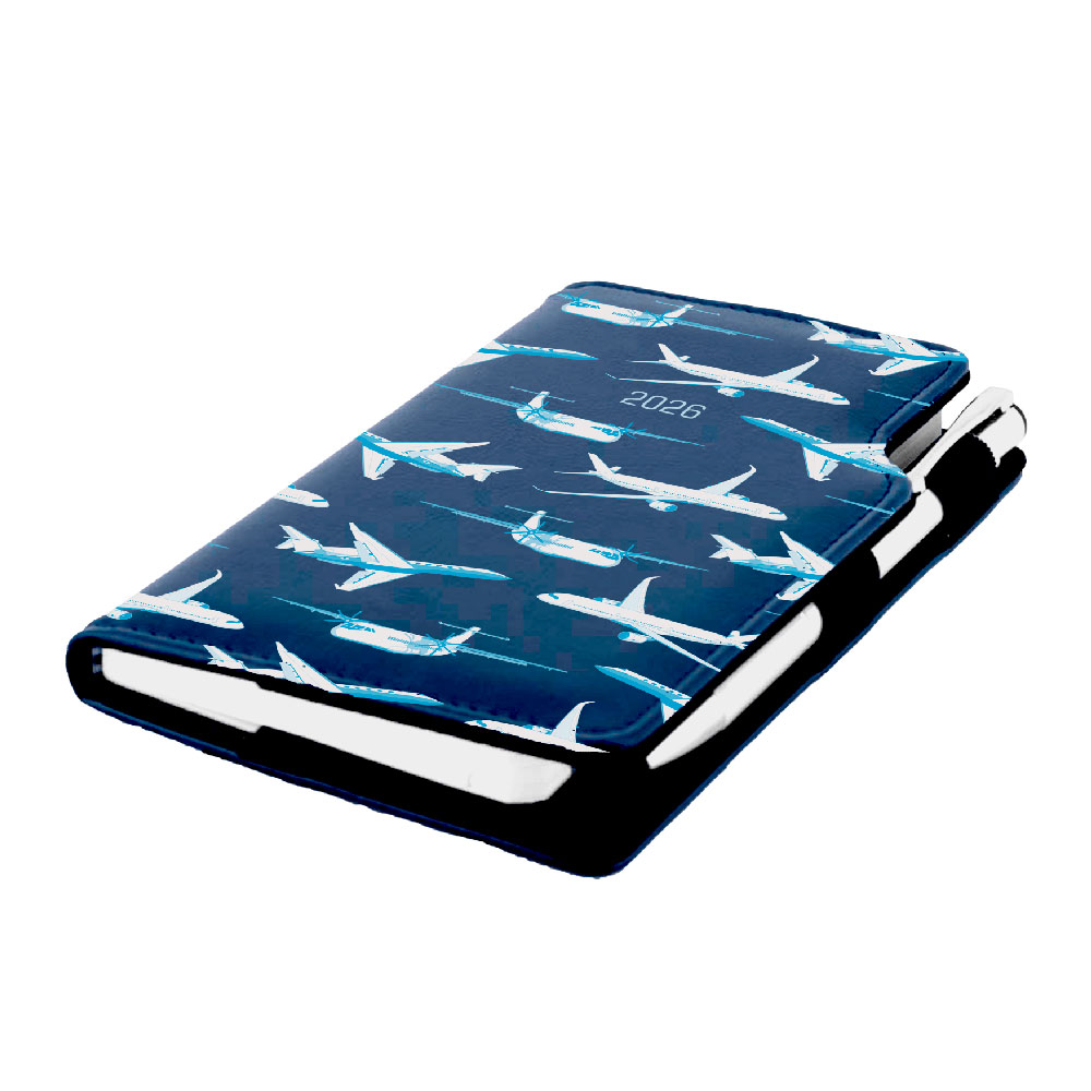 Kalendarz książkowy DESIGN tygodniowy kieszonkowy 2026 polski - granatowy - Samoloty