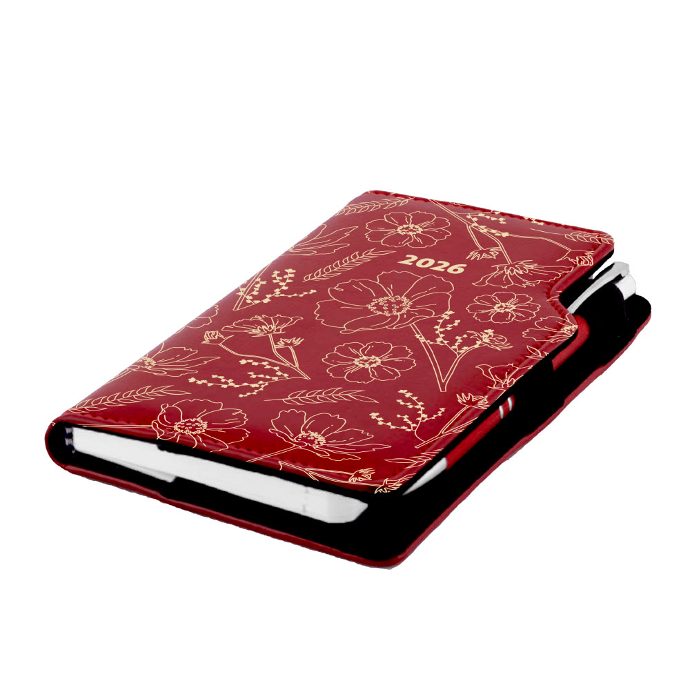 Kalendarz książkowy DESIGN tygodniowy kieszonkowy 2026 słowacki - bordowy - kwiaty