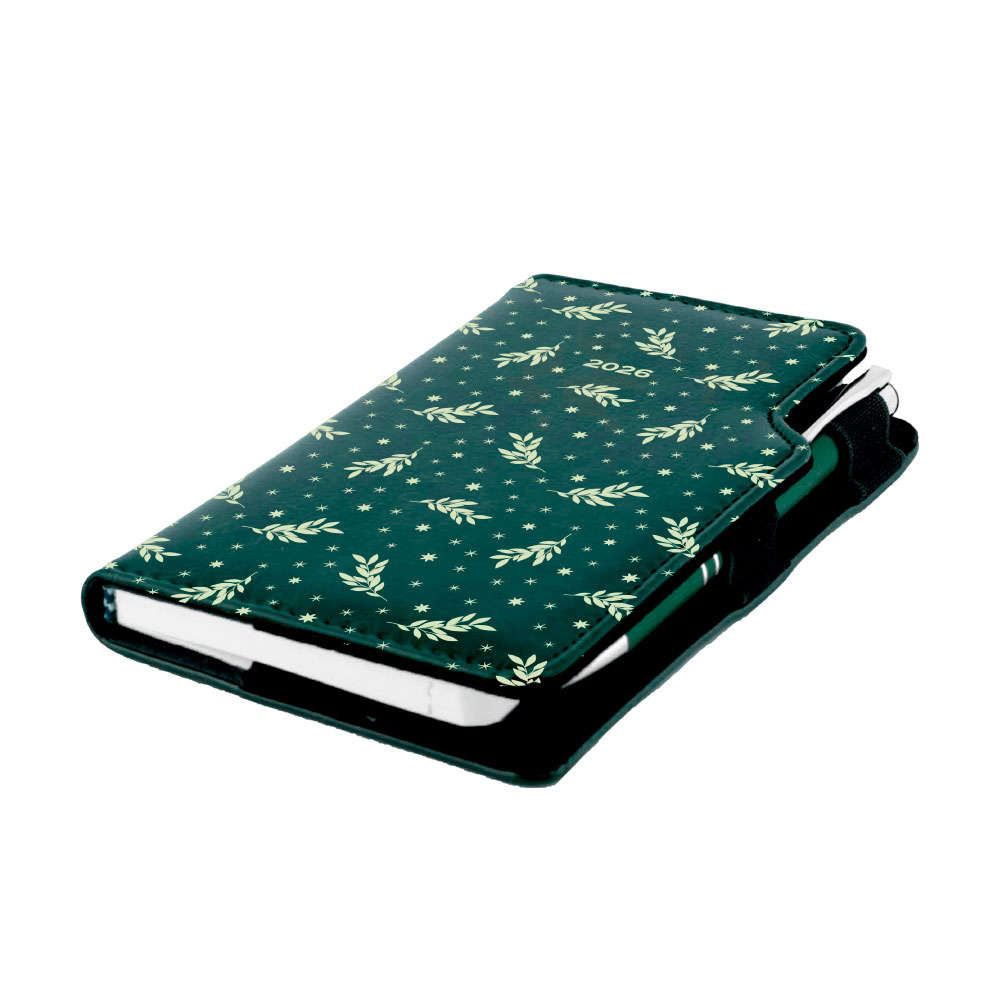 Kalendarz książkowy DESIGN tygodniowy kieszonkowy 2026 słowacki - zielony - gałązki