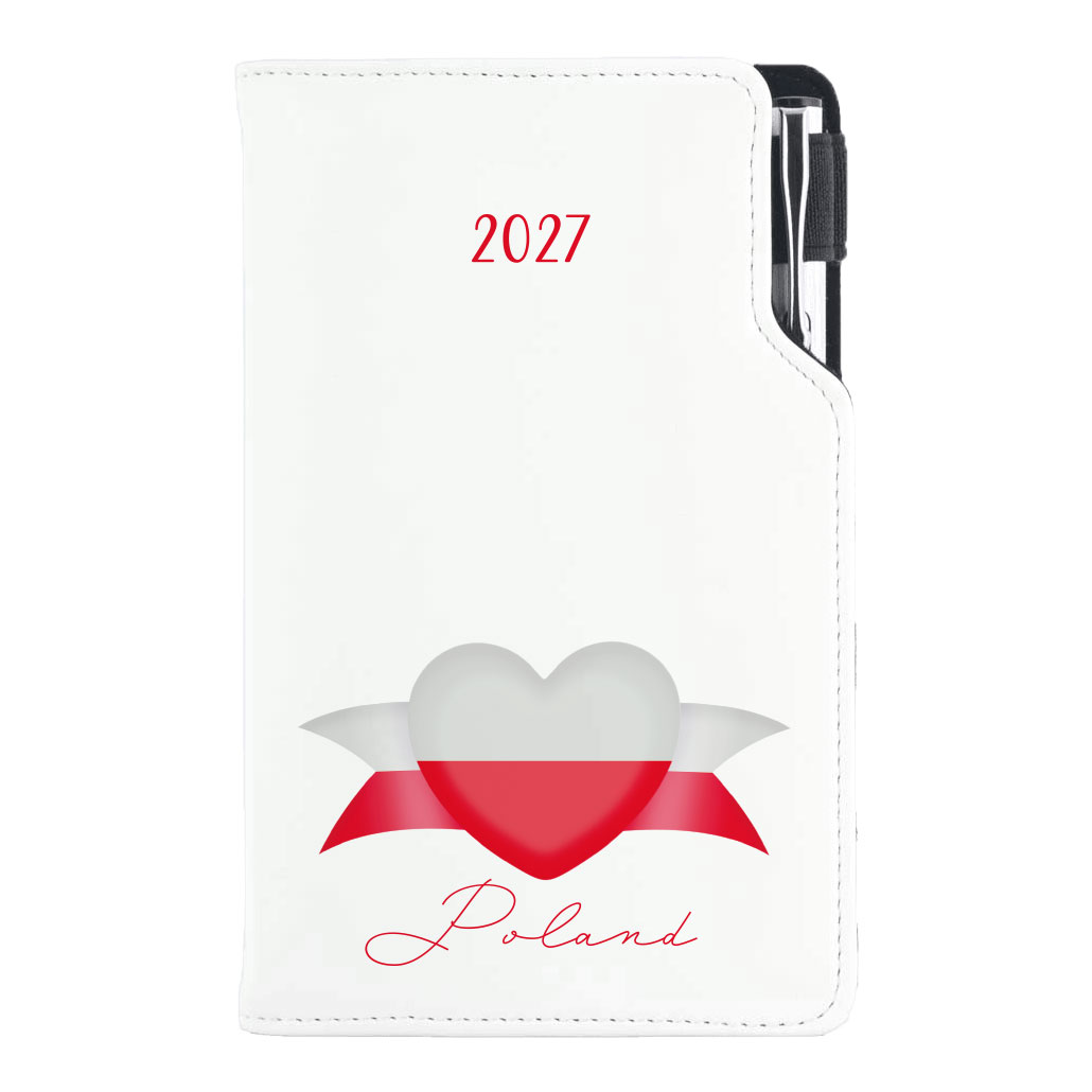 Kalendarz książkowy DESIGN tygodniowy kieszonkowy 2027 czeski- biały - Polska - flaga