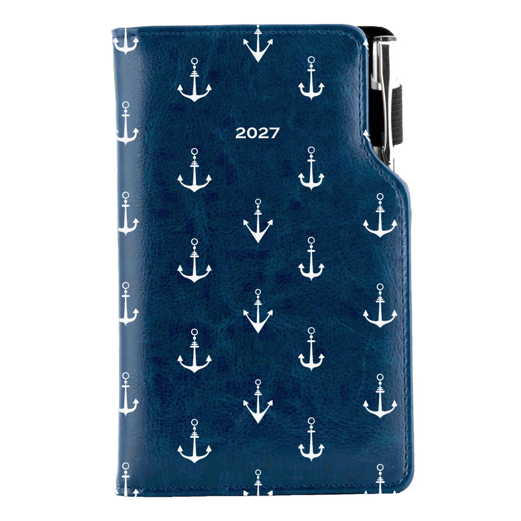 Kalendarz książkowy DESIGN tygodniowy kieszonkowy 2027 czeski - niebieski - marynarz - kotwice