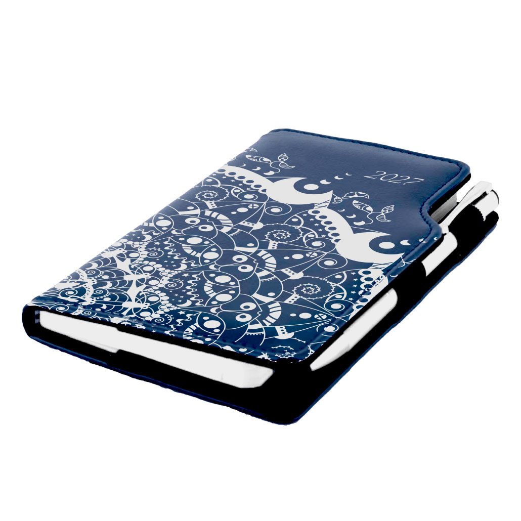 Kalendarz książkowy DESIGN tygodniowy kieszonkowy 2027 czeski - niebieski - ornament