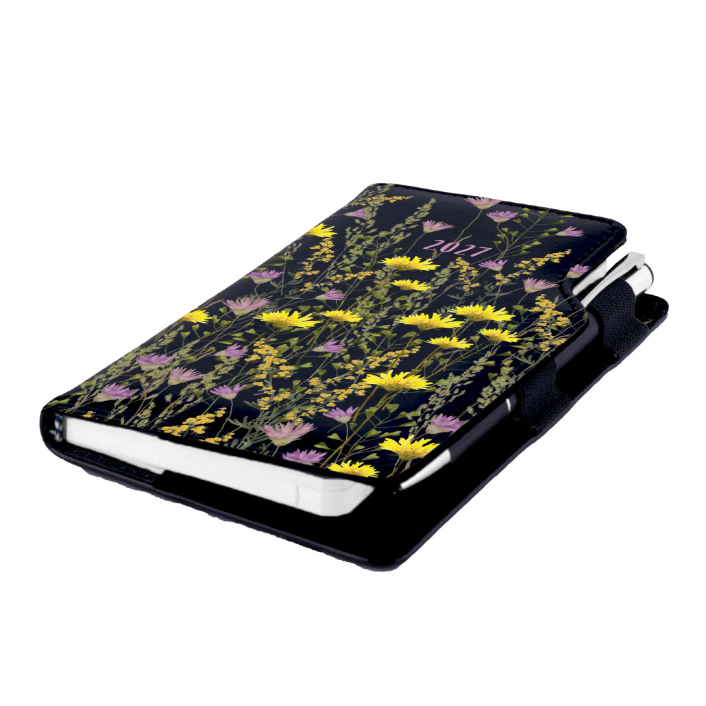 Kalendarz książkowy DESIGN tygodniowy kieszonkowy 2027 polski - czarny - łąka