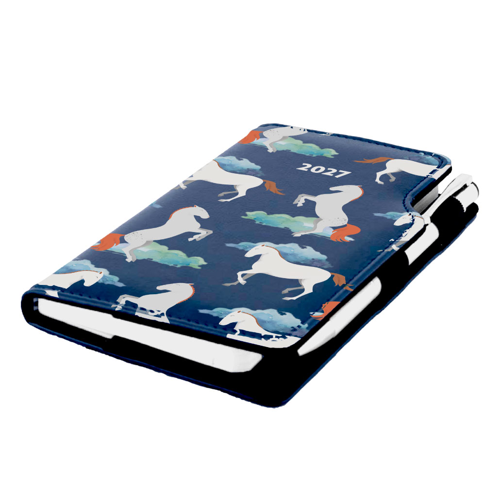 Kalendarz książkowy DESIGN tygodniowy kieszonkowy 2027 polski - granatowy - konie