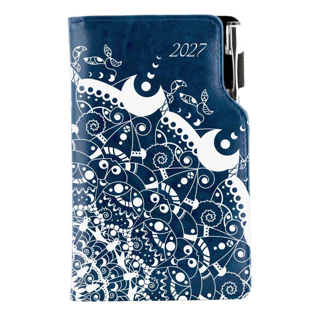 Kalendarz książkowy DESIGN tygodniowy kieszonkowy 2027 polski - granatowy - ornament