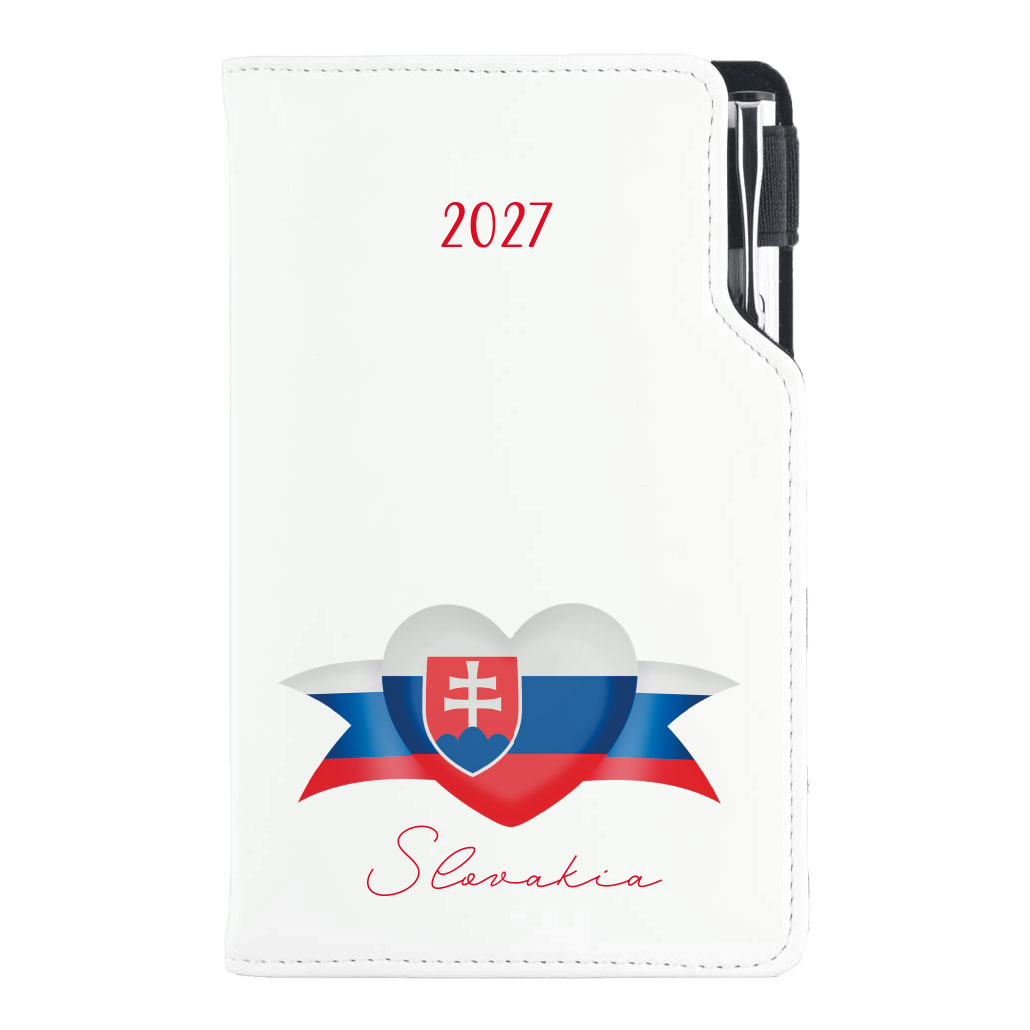 Kalendarz książkowy DESIGN tygodniowy kieszonkowy 2027 słowacki - biały - Słowacja - flaga