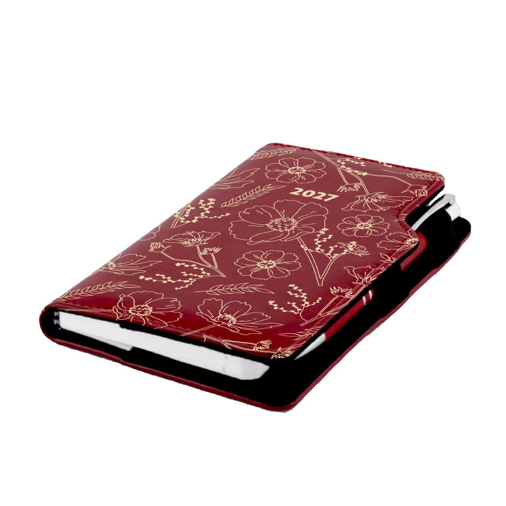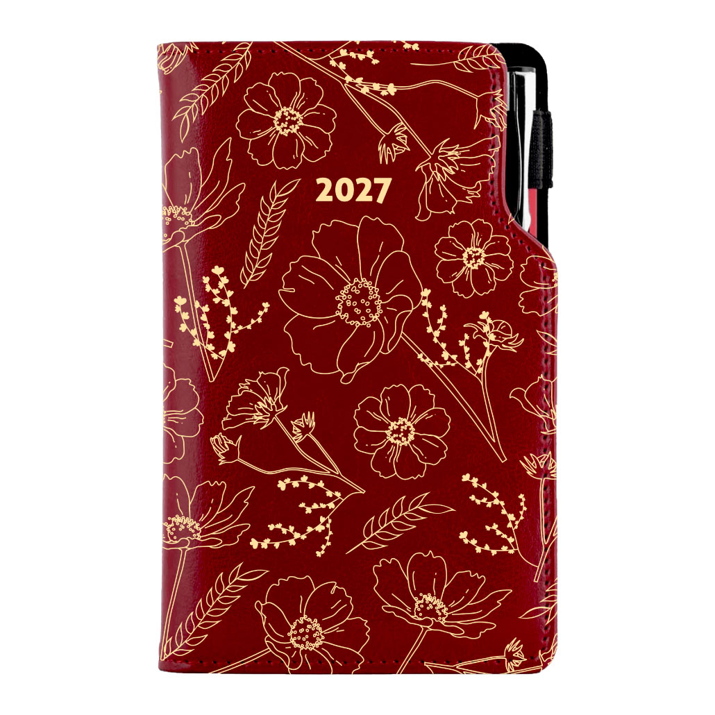 Kalendarz książkowy DESIGN tygodniowy kieszonkowy 2027 słowacki - bordowy - kwiaty