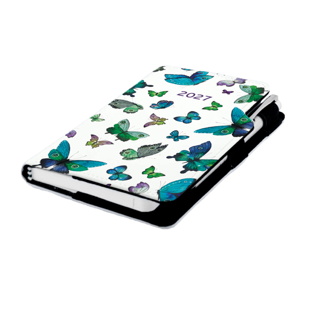 Kalendarz książkowy DESIGN tygodniowy kieszonkowy 2027 słowacki - Niebieskie motyle