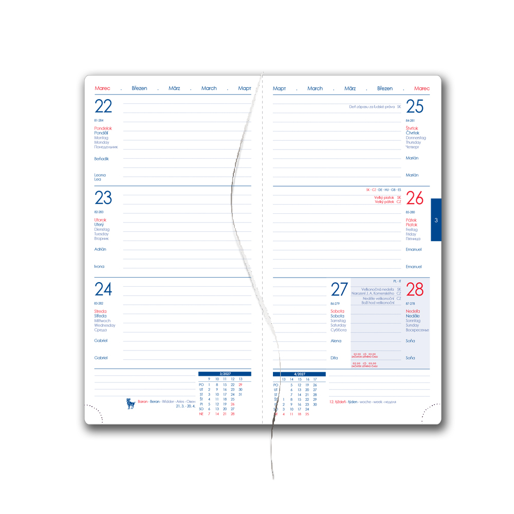 Kalendarz książkowy DESIGN tygodniowy kieszonkowy 2027 słowacki - Ziarno
