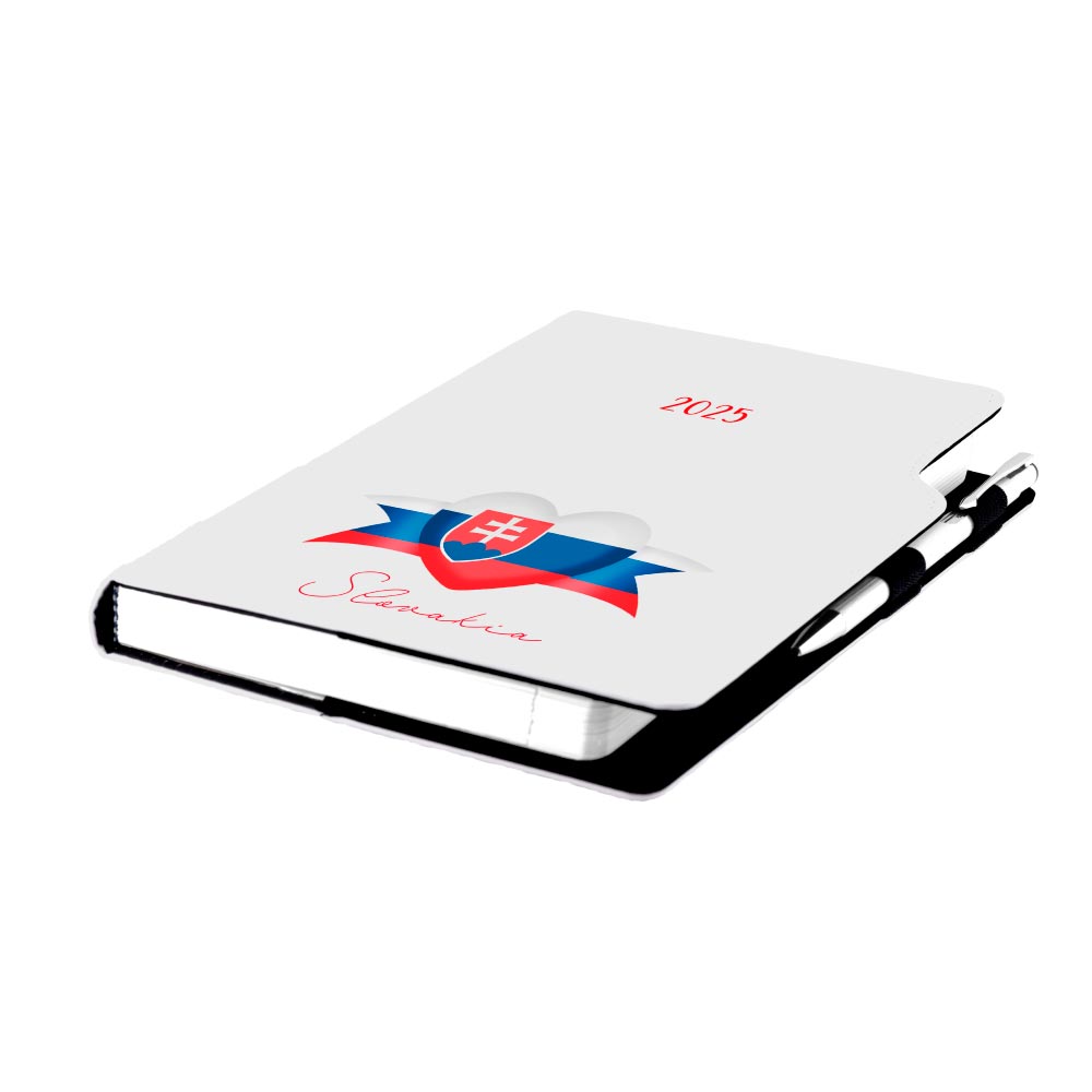 Kalendarz książkowy DESIGN tygodniowy z notesem A5 2025 - biały - Słowacja - flaga