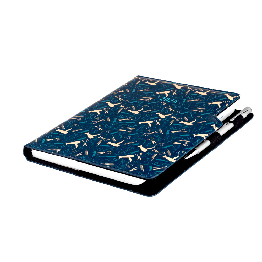 Kalendarz książkowy DESIGN tygodniowy z notesem A5 2026 - granatowy - Fryzjer