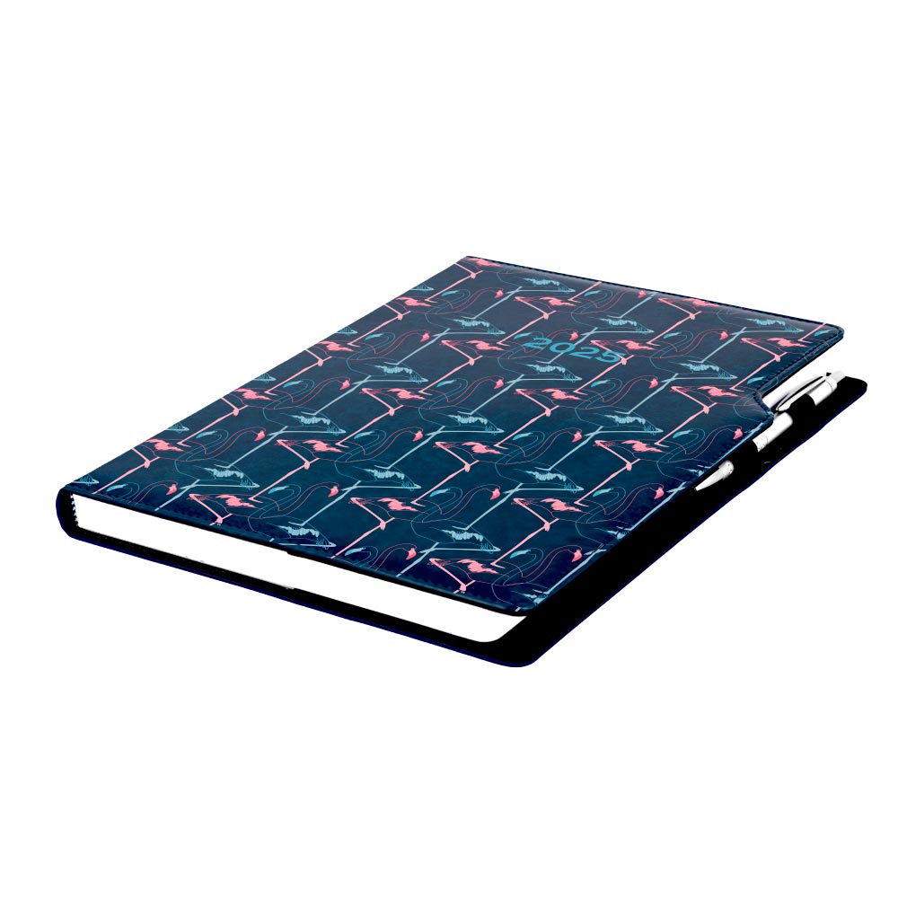 Kalendarz książkowy DESIGN tygodniowyA4 2025 polski - granatowy - Flamingo