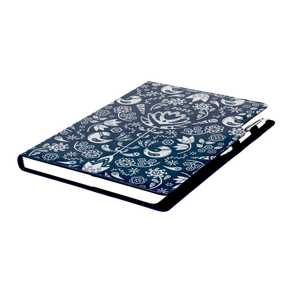 Kalendarz książkowy DESIGN tygodniowyA4 2025 polski - granatowy - Folk