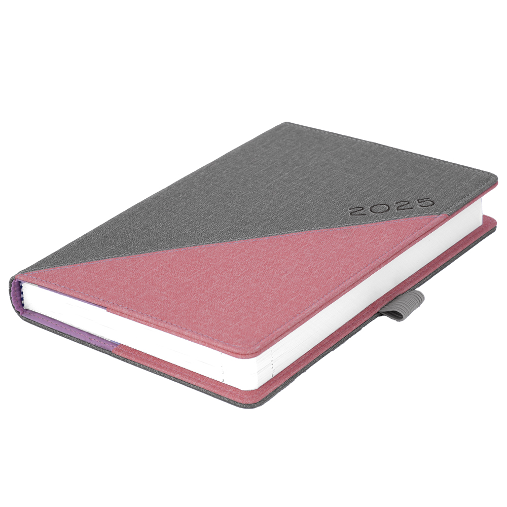 Kalendarz książkowy DIEGO dzienny A5 2025 słowacki?? - szary/różowy