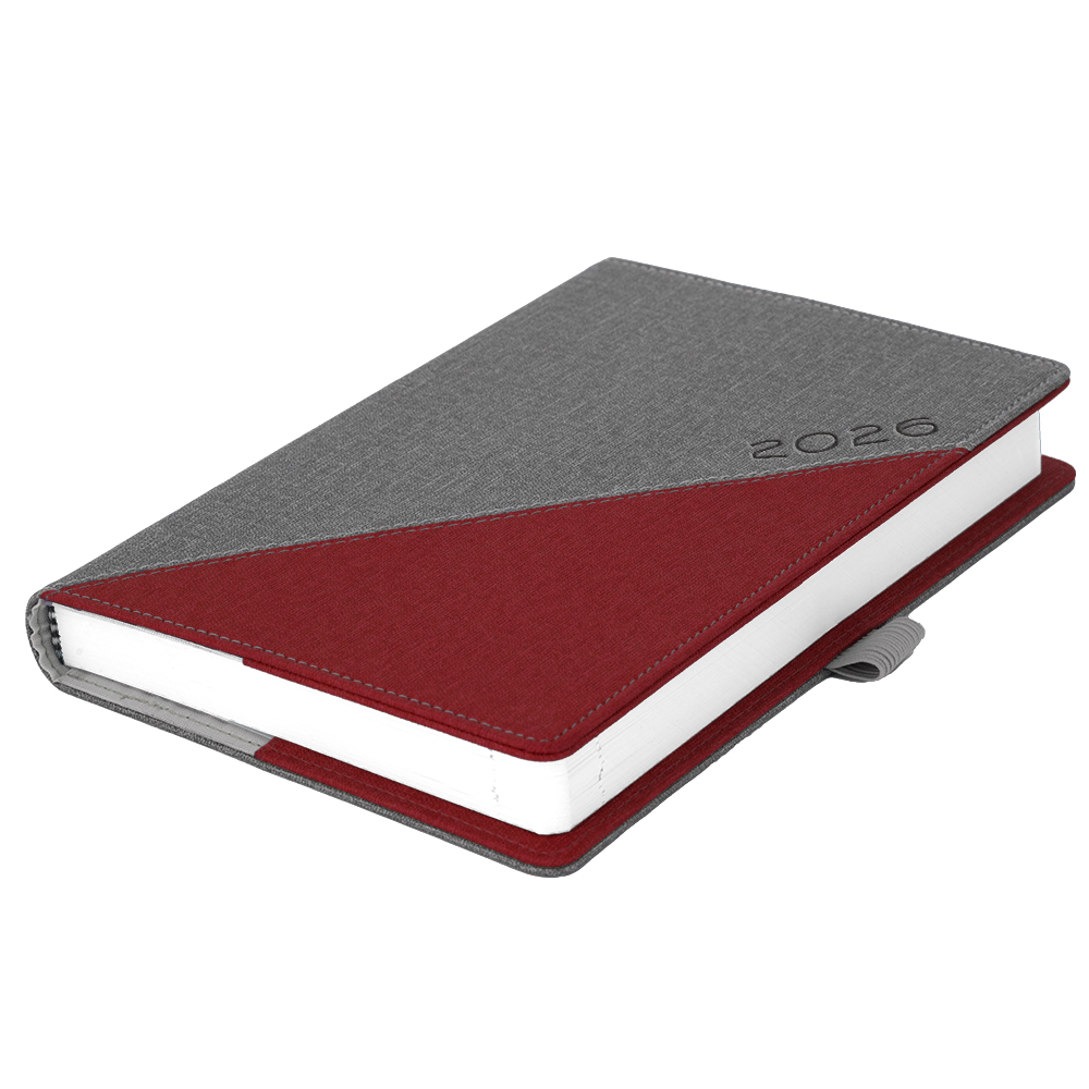 Kalendarz książkowy DIEGO dzienny A5 2026 słowacki?? - szary/czerwony