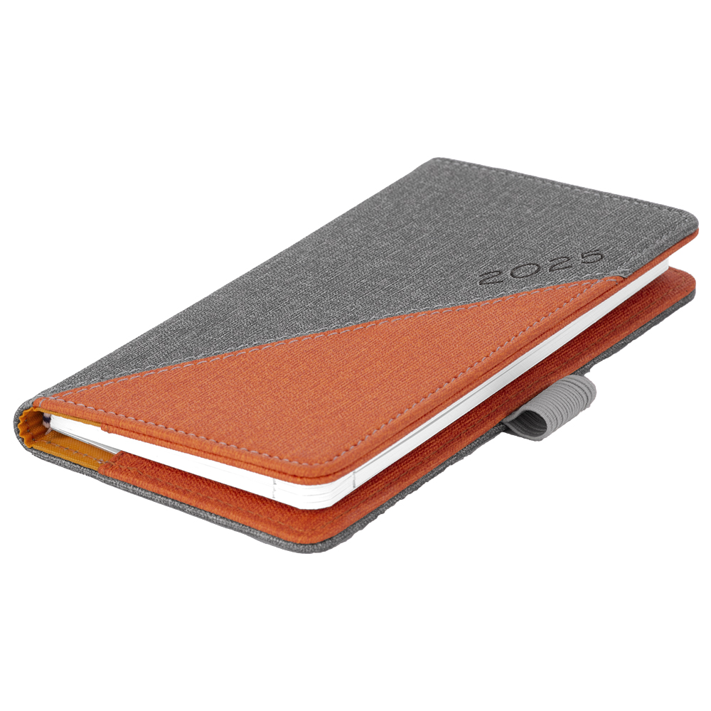Kalendarz książkowy DIEGO tygodniowy kieszonkowy 2025 polski - szary/pomarańczowy