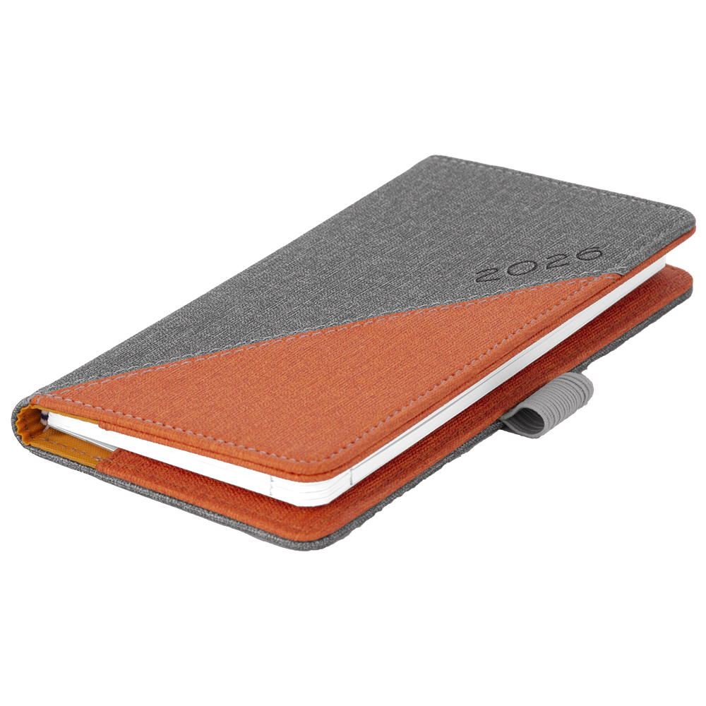 Kalendarz książkowy DIEGO tygodniowy kieszonkowy 2026 polski - szary/pomarańczowy